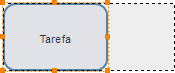 , ou a opção Excluir apresentada ao pressionar o botão direito do mouse sobre o elemento; - Redimensionar: Para redimensionar um elemento, é necessário seleciona-lo e arrastar os delimitadores que são apresentados nas bordas dos elementos selecionados, esses delimitadores são representados por pequenos quadrados laranjados. Por exemplo:
